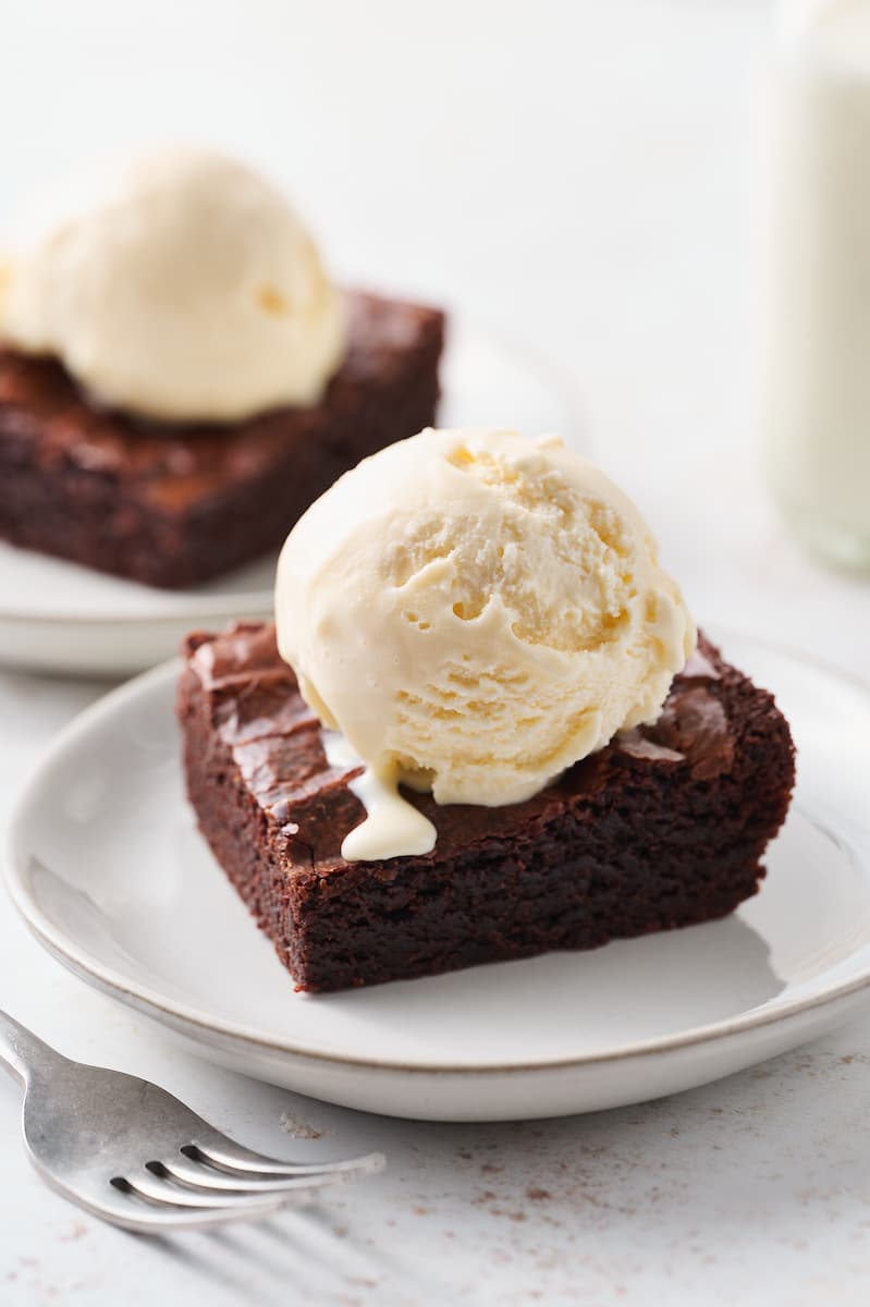The perfect brownies recipe for days you’re craving a brownie… but don’t want a ton of leftovers. Allow brownies to cool completely in the pan for that classic fudgy texture with moist crumbs and melted chocolate chips! Jump to the recipe, bake, and serve with ice cream!