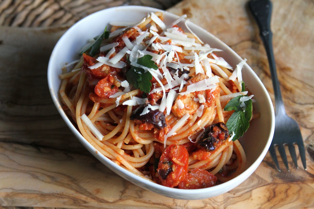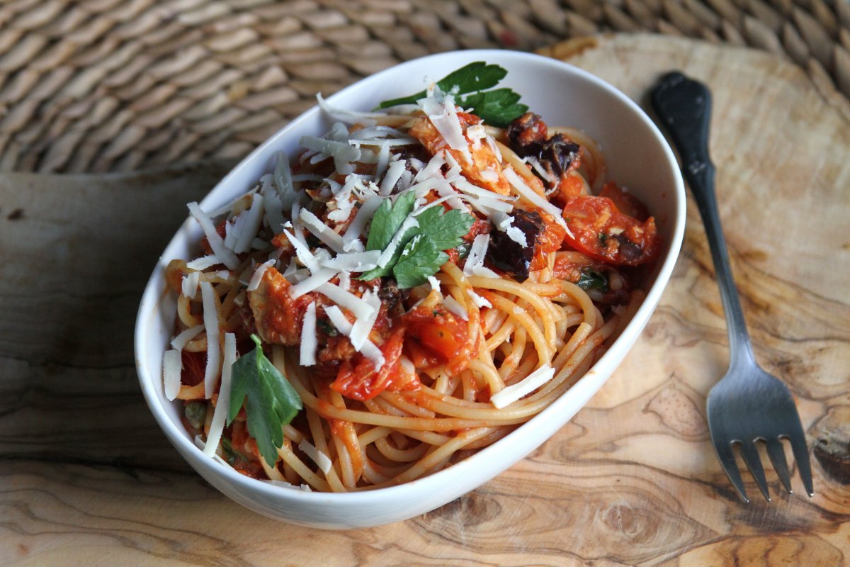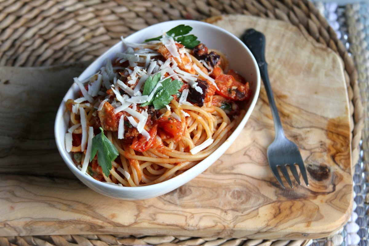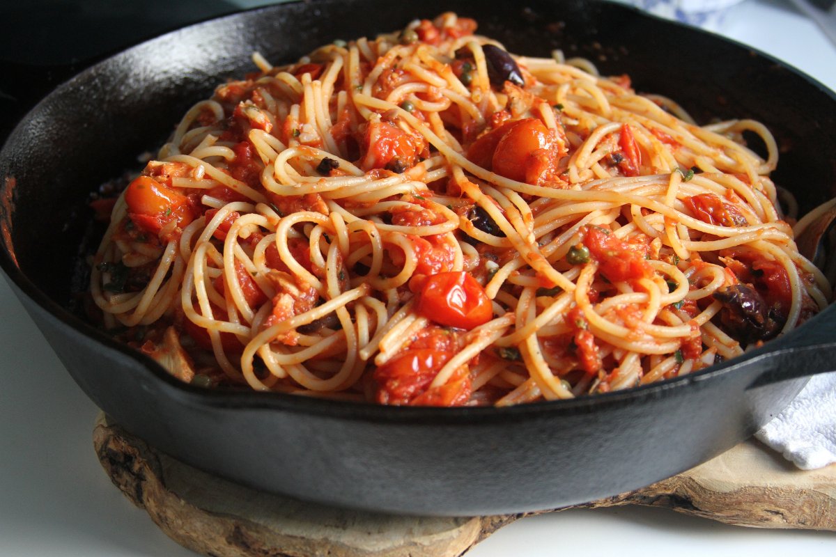 Tomato and Tuna Spaghetti Puttanesca – Baker by Nature