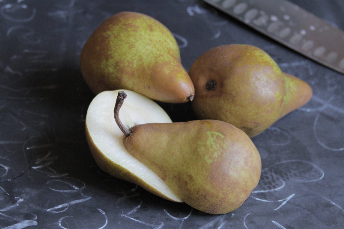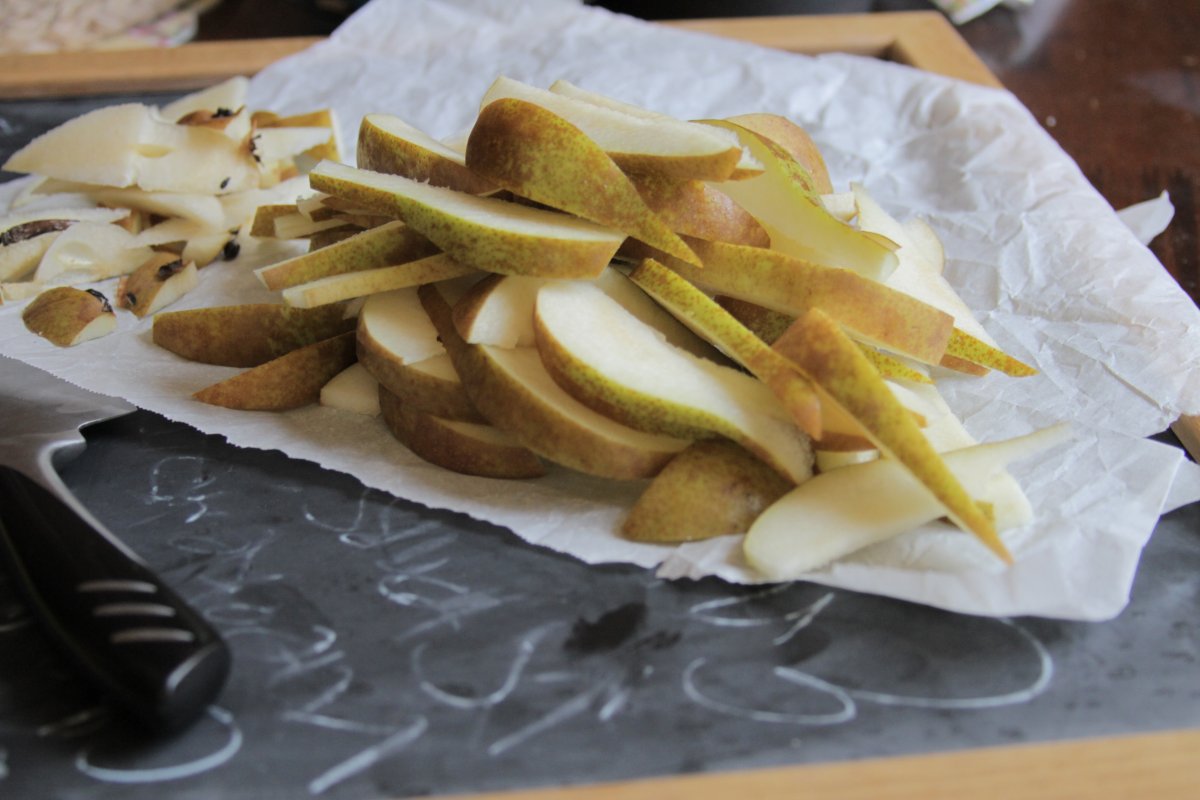 - 3 firm but ripe pears, peeled, cored, and each cut into 12 slices (1 pound prepped)
