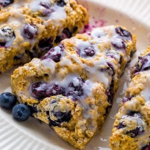 Sweet, delicious, and bursting with juicy berries… these vegan blueberry banana scones definitely deserve a spot in your breakfast rotation.