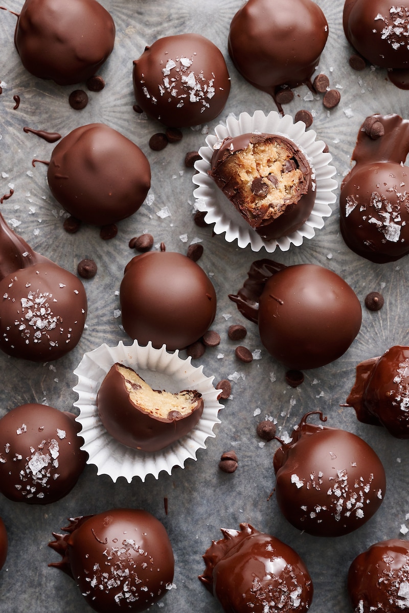Today I’m combining two of my all-time favorite recipes: Chocolate Chip Cookies and Truffles! They’re outrageously delicious and will make a great holiday gift for any cookie dough lover.