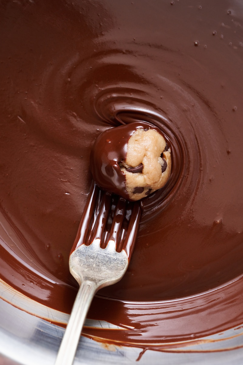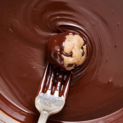- Vegan Chocolate: I LOVE Enjoy Life Brand chocolate (not sponsored!) and use their chocolate chips in almost all of my baking these days. You’ll need the mini chocolate chips for the cookie dough batter and the dark chocolate chips for the chocolate coating. Note: If you’re not vegan, feel free to use whatever brand chocolate chips you’d like! You can even dip these in white chocolate, if you prefer.