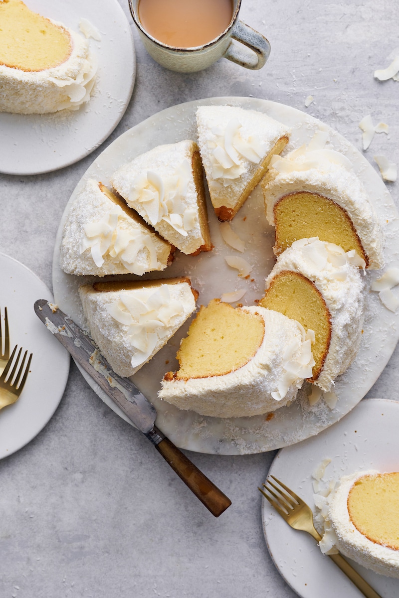 - Option: For a less sweet treat, use unsweetened coconut instead! Or skip the frosting and dust the whole cake with confectioners’ sugar and serve with fresh berries!